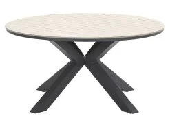 Wil je graag een ronde tuintafel met een uniek onderstel? Dan is de Edson Carbon black light teak een goede optie! Deze tuintafel is voorzien van een fraai ster-vormig aluminium onderstel met daarop een rond tafelblad. Zo heeft de tafel een unieke uitstraling en biedt hij ruimte voor 6 stoelen.